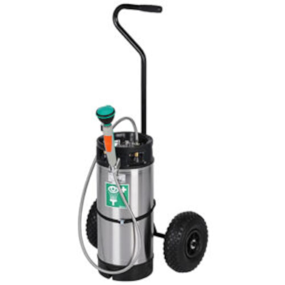 - La douche oculaire mobile à réservoir BR 960 005 de B-SAFETY est un dispositif de premiers secours transportable permettant un rinçage immédiat des yeux en cas d'urgence. Elle est équipée d'un réservoir en acier inoxydable d'une capacité d'environ 14 litres et est montée sur un chariot à main robuste doté de roues en caoutchouc plein, ce qui permet de l'utiliser de manière flexible sur différents lieux d'intervention.