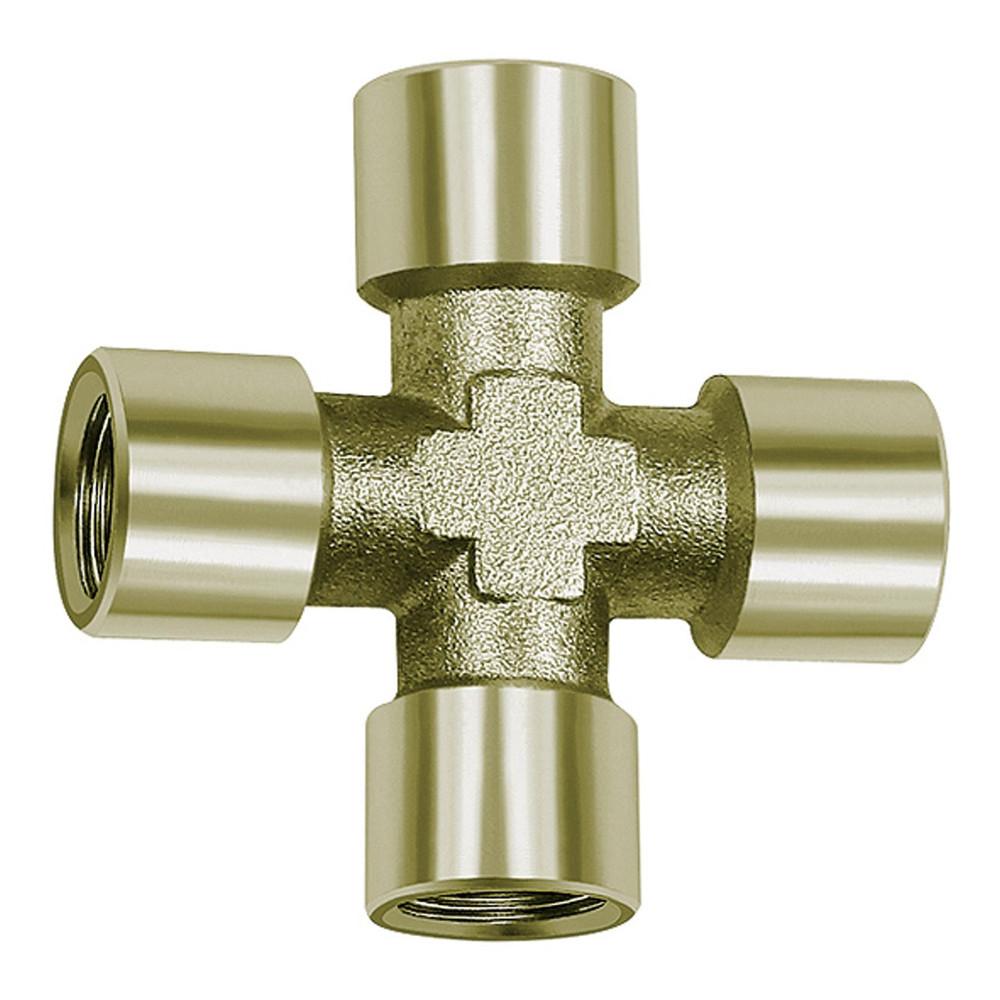 - La pièce en croix est un distributeur fileté à quatre côtés en laiton nickelé avec quatre filetages femelles selon G.